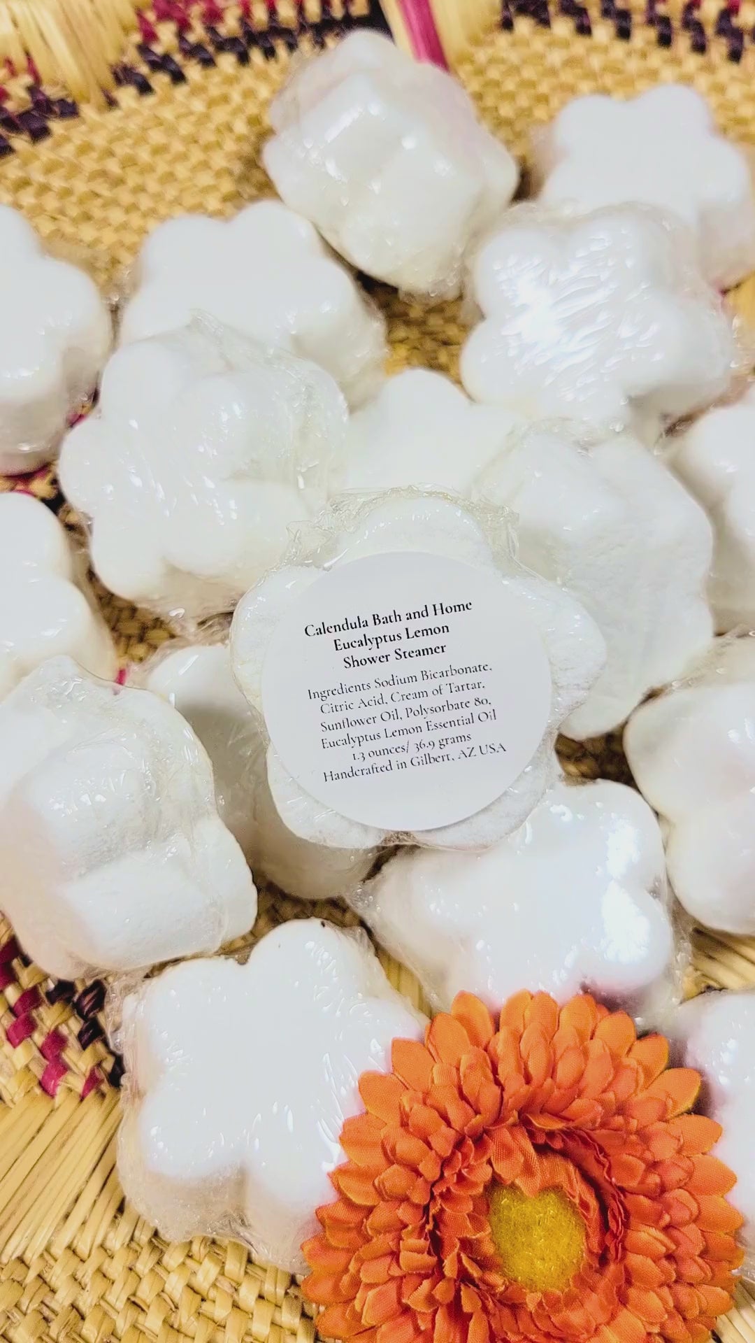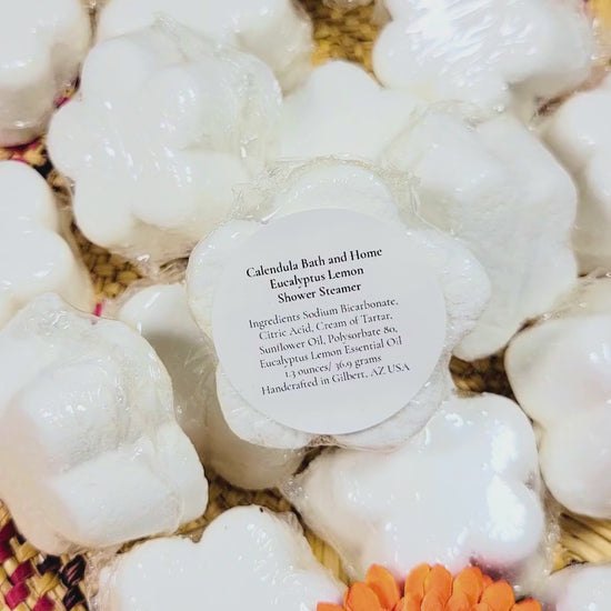 Eucalyptus Lemon Shower Steamers are infused with energizing and uplifting Eucalyptus Lemon Essential Oil.