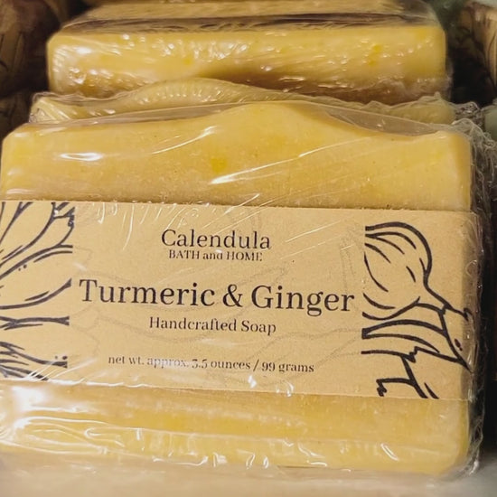 Our Turmeric & Ginger Coconut Milk Soap is a luxurious blend of coconut milk, turmeric, and ginger essential oil is an exotic and comforting experience for your skin. Made with calendula infused oil, this soap bar produces a light and fluffy lather.